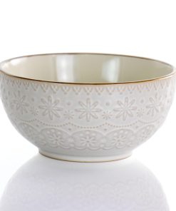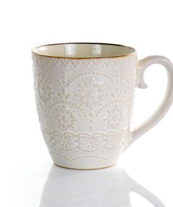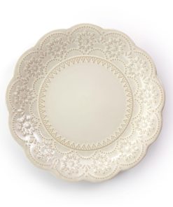 Doily Pattern Stoneware Dinnerware 16 Piece Set in Egg Shell