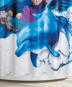 Dolphin Polyester Fabric Printed Shower Curtain 70"x72"