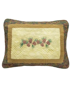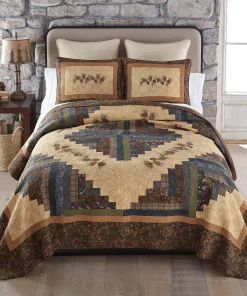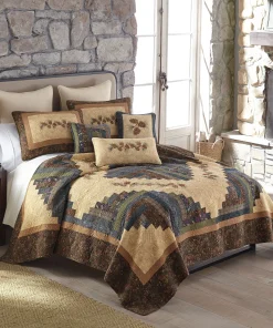 Transform your bedroom into a serene forest with Donna Sharp’s Cabin Raising Pinecone Quilt Set. Expertly pieced and embroidered, this unique quilt design features a diamond-shaped centerpiece surrounded by delicate pine cones for a stunning effect. The blend of complementing colors perfectly accents any rustic theme. Made of heavyweight cotton, this quilt is designed to last.