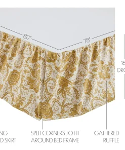 PERFECT FIT: The Dorset Gold King bed skirt is designed to perfectly fit and match your King bed; Comes with 1 (78x80x16) farmhouse bed skirt; Give this classic decor bed skirt to friends and family as a wedding, housewarming, or birthday present.,SOFT COTTON FABRIC: This King bed skirt is made from 100% luxurious cotton fabric; This farmhouse bed skirt is softer than the regular cotton blend and embellishes your bedroom decor.,COORDINATING ACCESSORIES: Pair this farmhouse bed skirt with matching quilts, shams, pillows, panels, and valances from the Dorset Gold collection.,LONG DROP SIZE: The 16 inch drop ensures that your bed skirt will reach the floor; Any boxes or possessions stored under the bed will be safely hidden away thanks to our farmhouse bed skirt, giving the bedroom a less cluttered look.,EASY TO CLEAN: To give your cotton bed skirt as many years of quality comfort as possible, place it in the wash on a gentle cycle, and afterward tumble dry low.