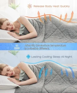 · ❄️【Double Sided Cold Effect】Both sides of the cooling comforter are made of dense cooling fiber fabric, after high-strength weaving process, the cold and hot blanket has a higher specific heat capacity and can dissipate heat efficiently and quickly. Our blanket keeps you cool for long periods of time instead of moments. It keeps you from sweating all night and keeps dry and non-sticky. Feel delicate, soft, silky and no static blanket for you to provide the most comfortable sleeping