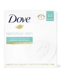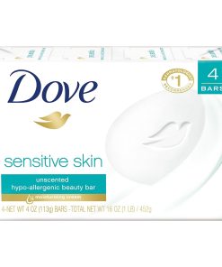 Dove Beauty Bar More Moisturizing Than Bar Soap for Softer Skin, Fragrance-Free, Hypoallergenic Beauty Bar Sensitive Skin With Gentle Cleanser 3.75 oz 14 Bars