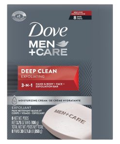 Dove Men+Care Men’s Bar Soap Deep Clean 8 Bars More Moisturizing Than Bar Soap Effectively Washes Away Bacteria, Nourishes Your Skin 3.75 oz