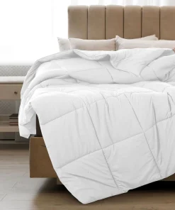 BOX STITCHING & DUVET TABS: The end-to-end diamond-shaped design prevents filling shifting, preserving the comforter’s fluffiness for years. Equipped with loops for a secure fit within your duvet cover, our down comforter offers enduring quality.