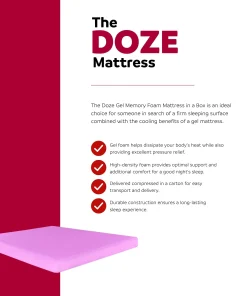 The Doze 6-Inch Gel Memory Foam Mattress in a Box is an ideal choice for someone in search of a firm sleeping surface combined with the cooling benefits of a gel mattress. Featuring a one inch layer of gel memory foam and five inches of high-density foam, the Doze Mattress packs a lot of comfort into a smaller form factor. You’ll be sure to wake up in the morning feeling refreshed thanks to the gel foam that works to dissipate your body’s heat while also providing excellent pressure relief. In addition, the high-density foam provides optimal support and additional comfort for a good night’s sleep. For added convenience, the Doze mattress is delivered compressed in a carton for easy transport and delivery.