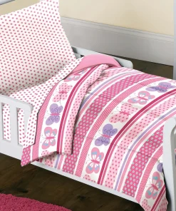 Your princess will be pretty in pink with this adorable Butterfly Dots toddler bedding set. Designed with comfortable polyester peached microfiber fabric, this comforter set features butterflies and dots in shades of pink, rose, purple, blue and white. This whimsical bedding is machine washable for easy care.