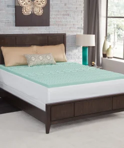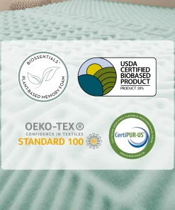 Instantly upgrade your sleep with targeted comfort and reversible support with the Dream Serenity 1.5" EcoZone Cooling Reversible Memory Foam Mattress Topper. This topper features proprietary Biossentials memory foam which provides superior pressure relieving comfort while being better for the environment. Â The foam features a USDA BioPreferred certification using certified bio-based memory foam which is naturally cooler and more breathable with the same pressure-relieving qualities as traditional memory foam while also replacing traditional petroleum-based with sustainable soy-based chemistry. The topper also features reversible comfort options with 5-zoned massaging comfort on one side and targeted support on the other. This product is OEKO-TEX Standard 100 certified and the memory foam is also 100% CertiPUR-US Certified ensuring the product is made without harmful chemicals and is tested by independent labs to meet rigorous standards for content, emissions, durability, and performance. Ships compressed and rolled to conveniently arrive at your doorstep for easy setup. Made in the USA. Â