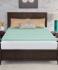 Instantly upgrade your sleep with targeted comfort and reversible support with the Dream Serenity 1.5" EcoZone Cooling Reversible Memory Foam Mattress Topper. This topper features proprietary Biossentials memory foam which provides superior pressure relieving comfort while being better for the environment. Â The foam features a USDA BioPreferred certification using certified bio-based memory foam which is naturally cooler and more breathable with the same pressure-relieving qualities as traditional memory foam while also replacing traditional petroleum-based with sustainable soy-based chemistry. The topper also features reversible comfort options with 5-zoned massaging comfort on one side and targeted support on the other. This product is OEKO-TEX Standard 100 certified and the memory foam is also 100% CertiPUR-US Certified ensuring the product is made without harmful chemicals and is tested by independent labs to meet rigorous standards for content, emissions, durability, and performance. Ships compressed and rolled to conveniently arrive at your doorstep for easy setup. Made in the USA. Â