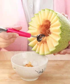EASY TO CLEAN: Stainless steel construction of the fruit scoop is not only durable, but also easy to clean and dishwasher safe.
