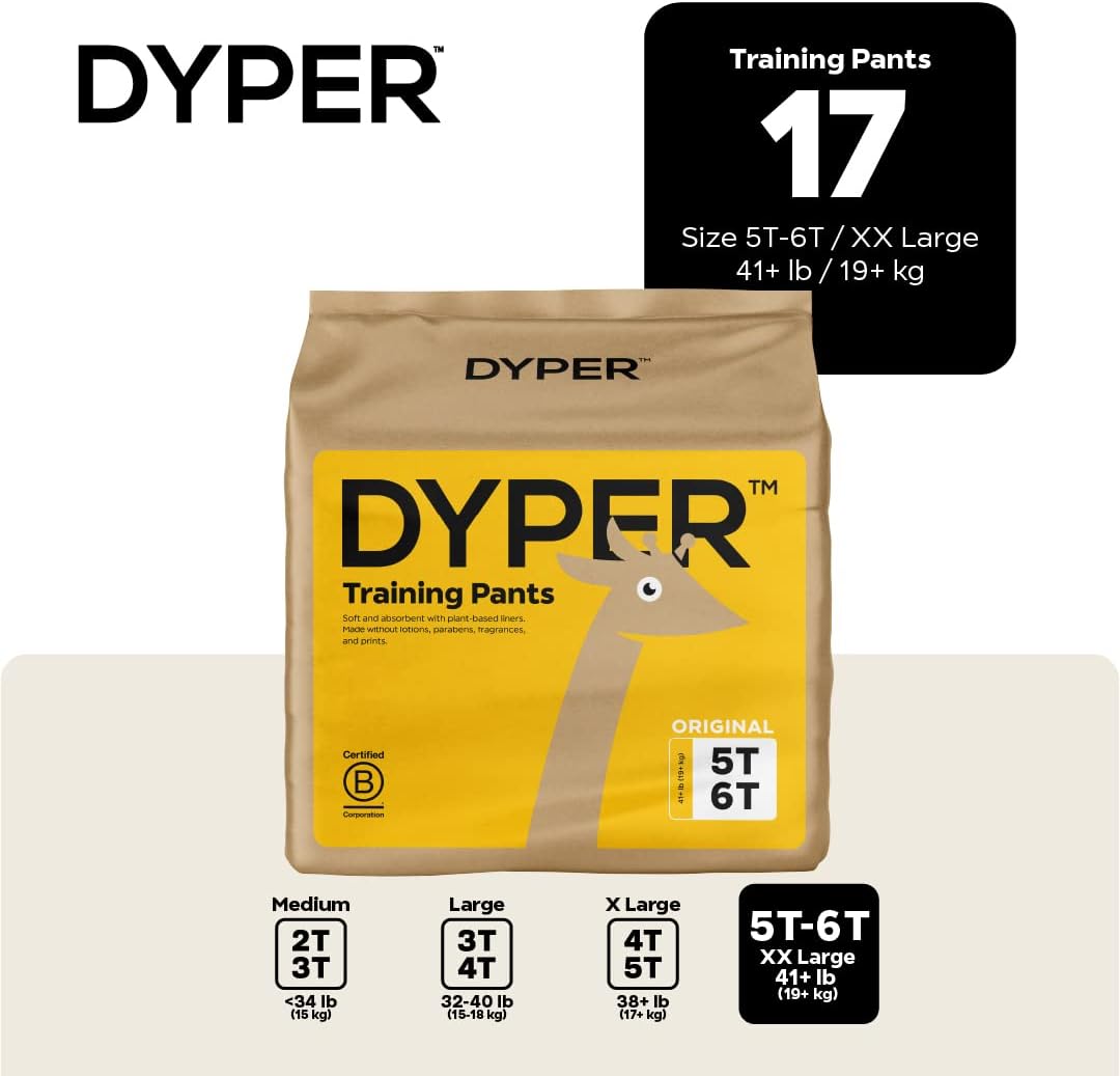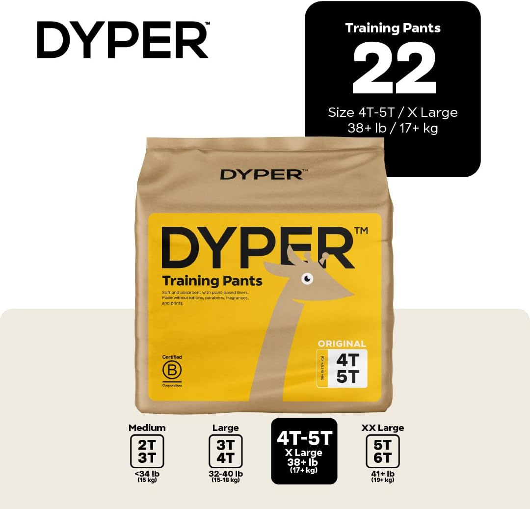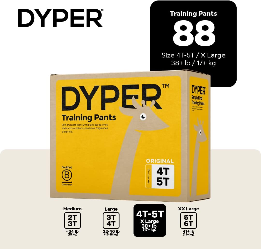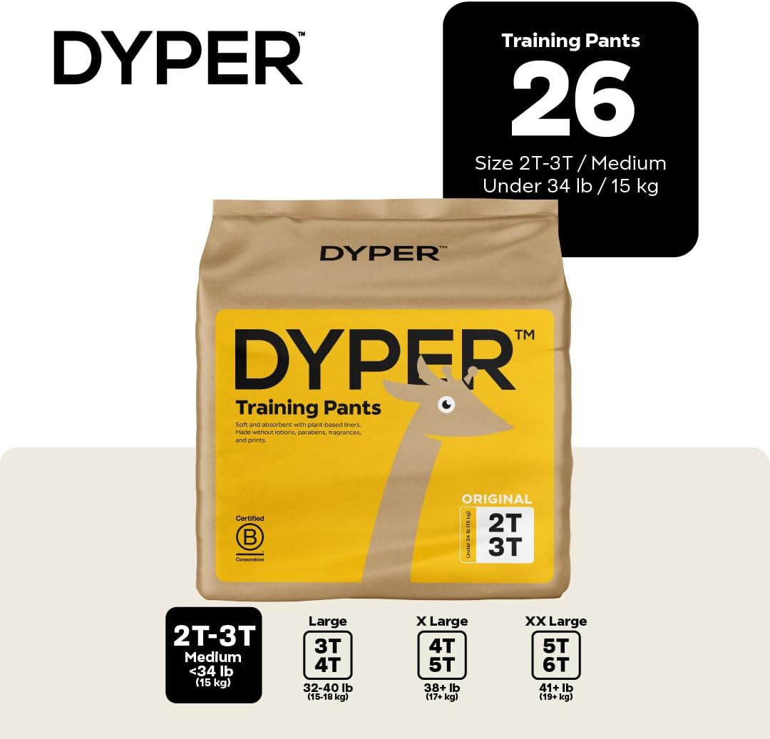 DYPER Toddler Potty Training Pants Girls & Boys, Honest Ingredients, Day & Overnight, Made with Plant-Based* Materials, Hypoallergenic for Sensitive Skin, Unscented (Size 2T-3T, 26, Count)