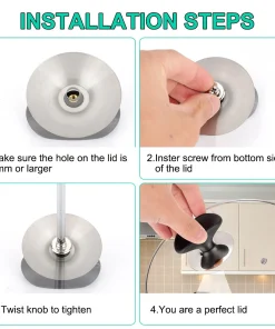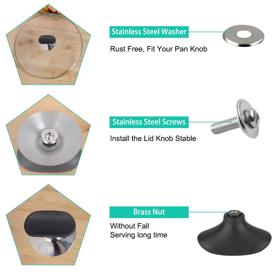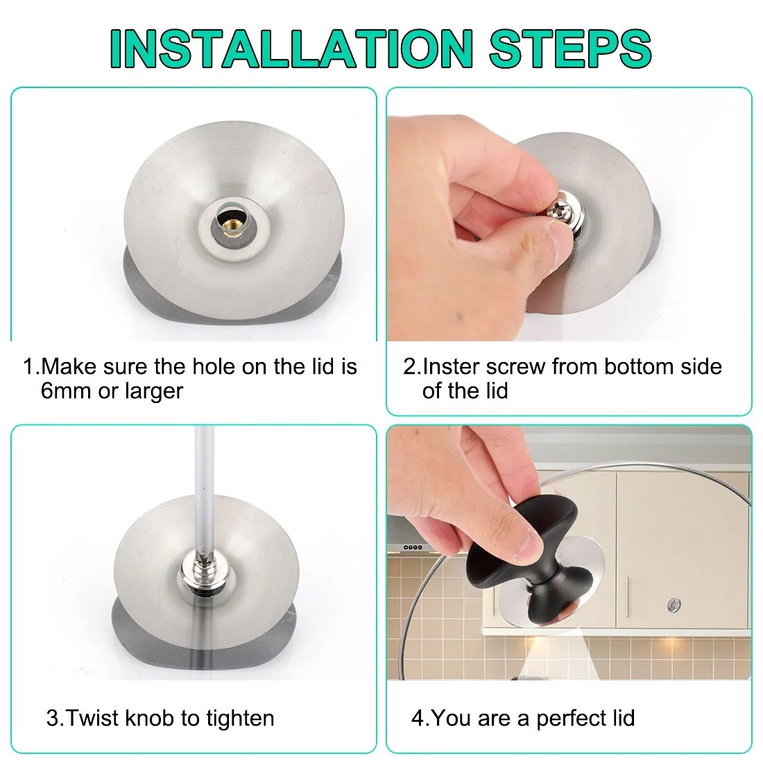 Replace your broken or old pot lid knob with our Easy Lifting Pan Pot Lid Knob Universal Bakeware Handle Replacement. Made of durable plastic and stainless steel, this knob is designed to fit most cookware lids, including pots, pans, and kettles. The heat-resistant plastic handle is easy to grip, protecting your hands while allowing you to easily lift lids off pots or saucepans. With a retaining screw for easy fixing, this replacement knob will have your lid securely attached in no time. Upgrade your cookware and continue cooking with ease with our reliable lid knob replacement.
