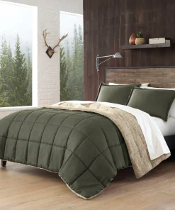 Eddie Bauer’s iconic Sherwood Comforter Collection was crafted for cold winter nights. This set is made with 100% polyester- featuring a micro-mink face and faux shearling sherpa reverse for added warmth. The sham(s) feature 2-piece center back closure while the comforter features a modern box quilt stitch design. A signature Eddie Bauer logo patch elevates the collection, which is conveniently machine washable. This set is available in multiple colors, each sold separately.