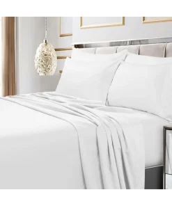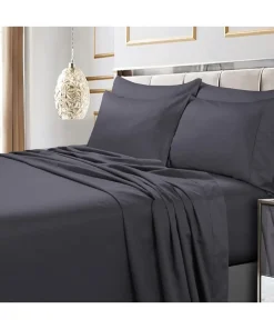 - Set includes 1 flat sheet, 1 fitted sheet and 4 pillowcases
