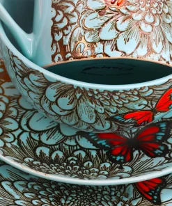 Elama’s Butterfly Garden 16 piece Dinnerware set will be the focal point of your next gathering. Bright blue set with hues of gold and Monarch butterflies can be used for every day meals and special occasions. Bring this beautiful set home today! Constructed of Stoneware material, this set is Microwave and Dishwasher safe.This Set includes: Four 10.5 in. Dinner Plates, Four 8 in. Salad Plates, Four 6 in. Bowls and Four 11 oz. Mugs