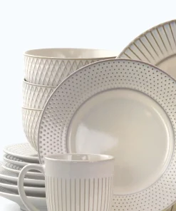Elevate your dining experience with the Elama Marketplace Favorites 16pc Dinnerware Set in Embossed White. This stunning set features contemporary shapes, elegant embossed accents, and a beautiful white color that adds a touch of sophistication to any table setting. Perfect for both special occasions and everyday use, these dishes are microwave-safe for quick reheating and dishwasher-safe for easy cleaning.