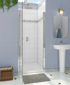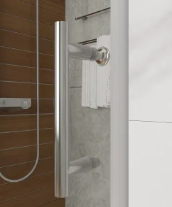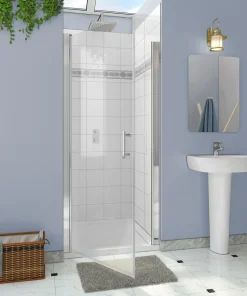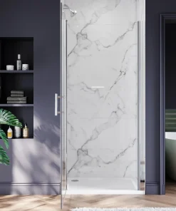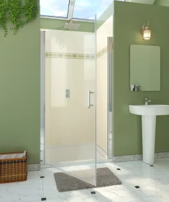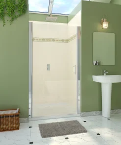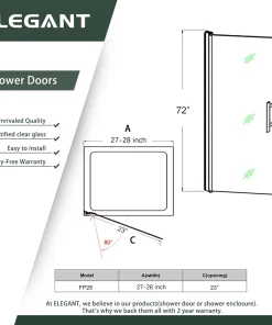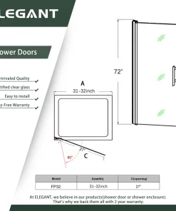 Upgrade your bathroom with the Elegant Adjustable Width Frameless Pivot Swing Shower Door by Certified Clear Tempered Glass Door. This shower door boasts a modern and elegant design that will elevate the look of your space. The clear tempered glass is ANSI Z97.1 certified, ensuring durability and easy maintenance for years to come. The reversible design allows for both right or left door opening installation to accommodate any bathroom layout. The full length clear vinyl magnetic door seal and bottom strips provide excellent waterproofing. The external 304 stainless steel zinc alloy door handle adds a touch of sophistication while the rise and fall pivot mechanism makes for easy opening and closing. Professional installation is recommended for best result.Â