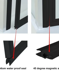 - Clear vinyl magnetic door seals create a waterproof barrier to prevent leakage