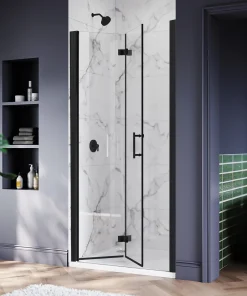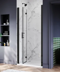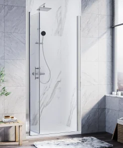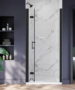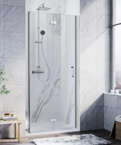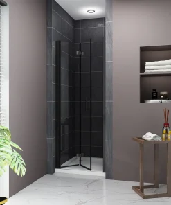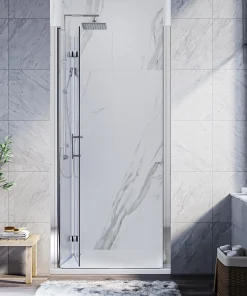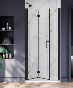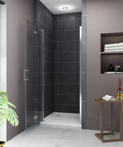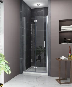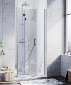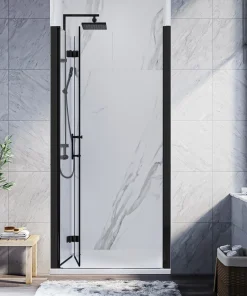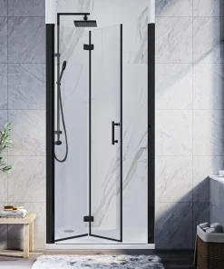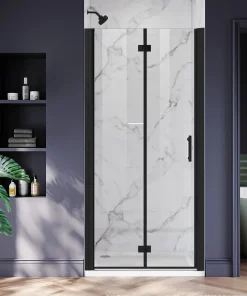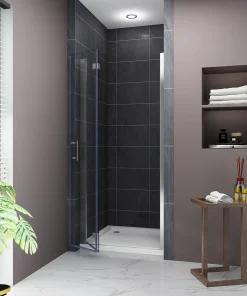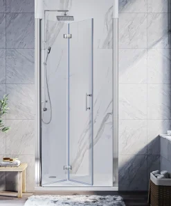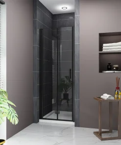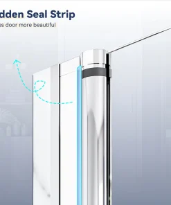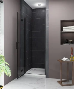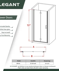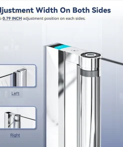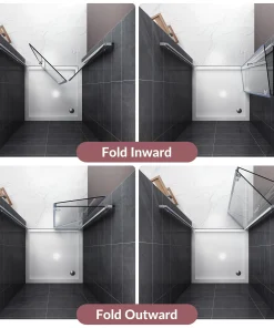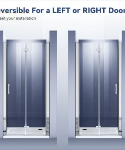 Elegant Bi-Fold Frameless Pivot Swing Shower Door Enclosure boasts a sleek and modern design that is both stylish and functional. Made with 1/4-inch clear certified tempered glass, this door is adjustable on each side to fit any bathroom layout. The chrome finish or matte options offer a trendy look, while the vinyl magnetic shower door seals strips provide a waterproof guarantee. The high-quality chrome hinges are flexible and can rotate 180° for added convenience. Plus, the overlapping design saves space when fully open. Choose from four different sizes and two color options to customize your bathroom. Professional installation is recommended.Â