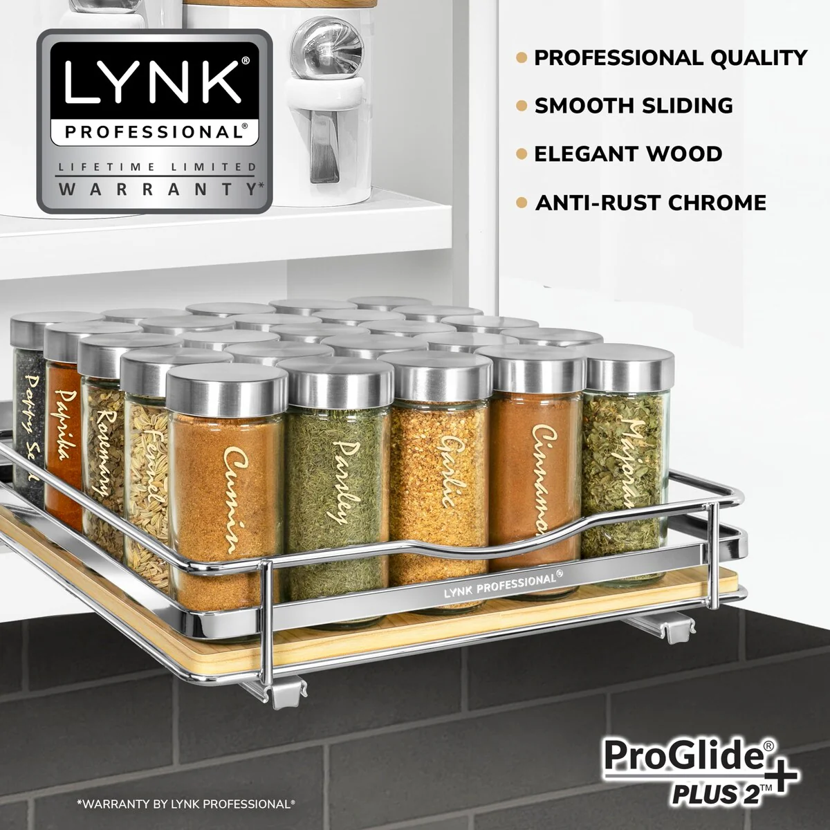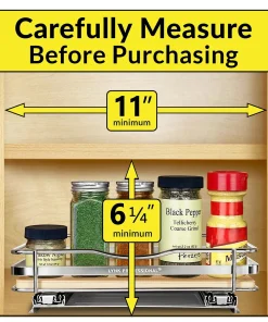 ® Élite™ Pull Out Spice Rack Organizer 10-1/4 inch Wide Slide Out Rack Wood and Chrome Sliding Spice Organizer Shelf