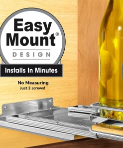 SETUP IS A BREEZE! – no struggling within limited space trying to place four awkward and difficult to reach screws inside your upper cabinets or into pantry shelves – our exclusive EASY MOUNT cabinet friendly drawer design installs with just two screws in the easily accessible back of your narrow cabinets – in minutes with no measuring!