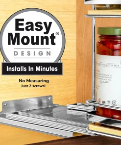 SETUP IS A BREEZE! – no struggling within limited space trying to place four awkward and difficult to reach screws inside your upper cabinets or into pantry shelves – our exclusive EASY MOUNT cabinet friendly drawer design installs with just two screws in the easily accessible back of your narrow cabinets – in minutes with no measuring!