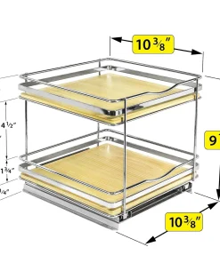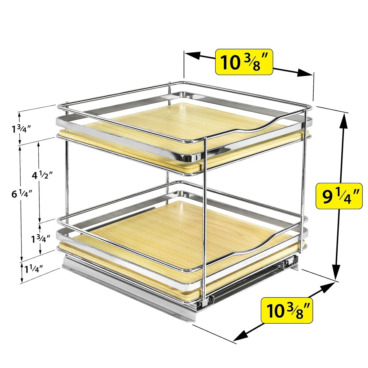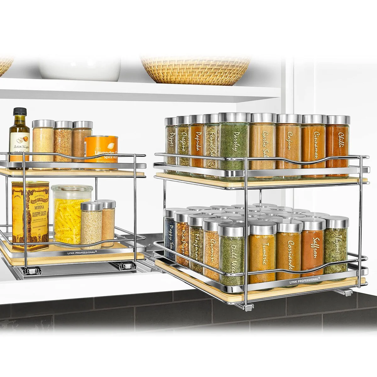 ® Élite™ Pull Out Spice Rack Organizer 10-1/4 inch Wide Wood and Chrome Sliding Spice Organizer Shelf 2 Tier