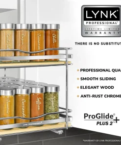 FEEL LIKE A PROFESSIONAL COOK WITH EVERYTHING AT YOUR FINGERTIPS – our patented PROGLIDE PLUS 2 with heavy-duty ball bearing glides adjust to perfectly fit the various depths of upper cabinets giving you easy access, storage, and organization for all your bottles and jars
