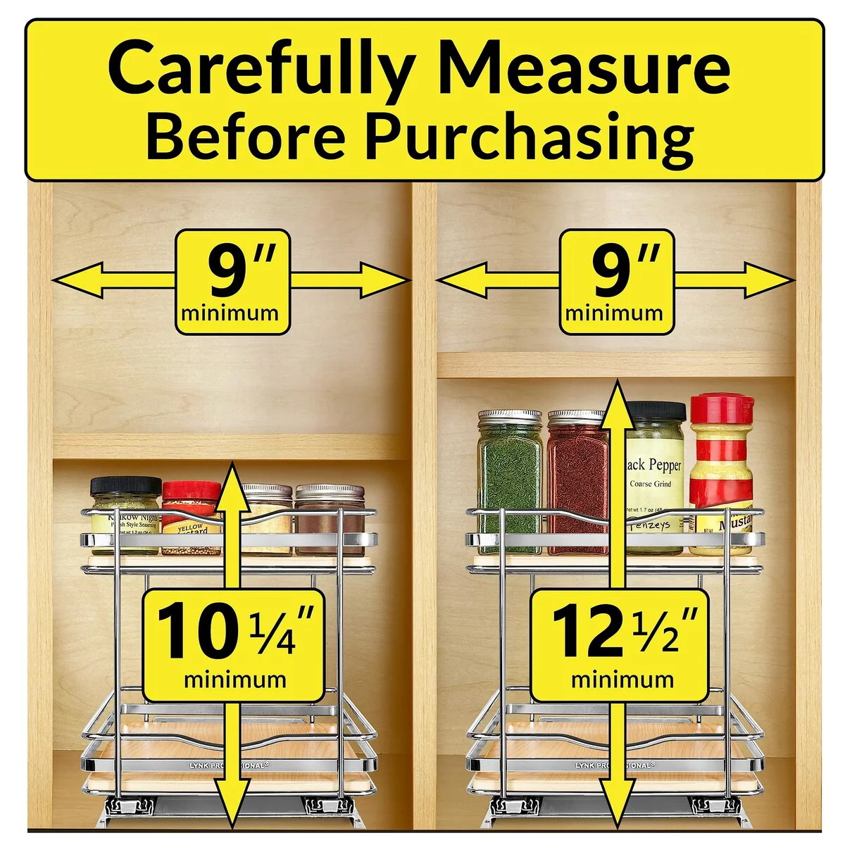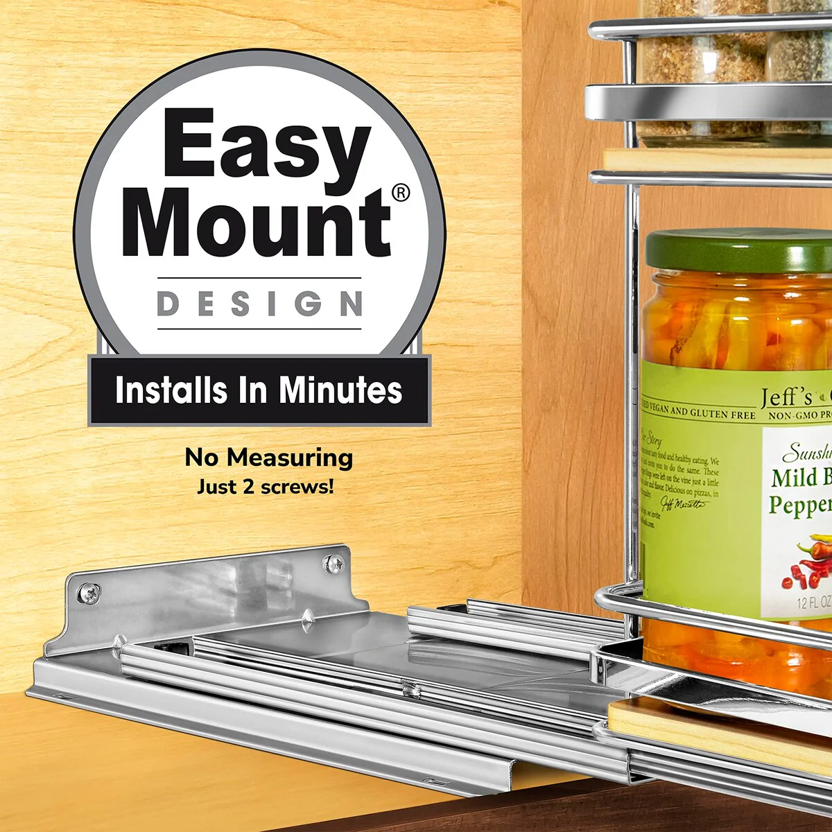 ® Élite™ Pull Out Spice Rack Organizer 8-1/4 inch Wide Slide Out Rack Wood and Chrome Sliding Spice Organizer Shelf 2 Tier