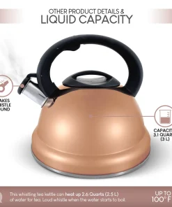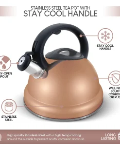 ELITRA Whistling Tea Kettle – Stainless Steel Tea Pot for Stovetop with Stay Cool Handle – 3.1 Quart / 3 Liter – Rose Gold – New