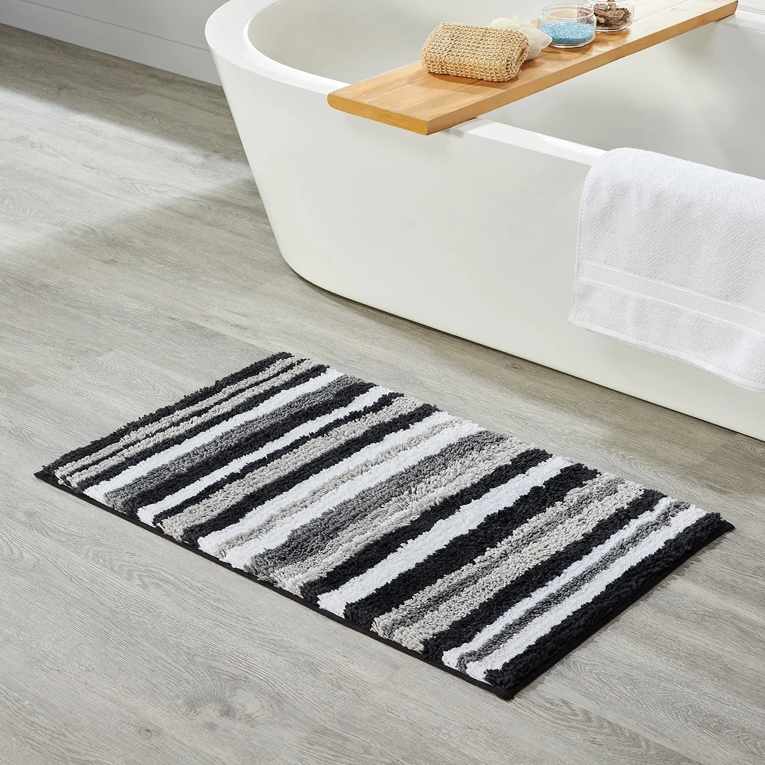 1 Pcs Chenille Striped Bathroom Rug Mat, Non-Slip Soft Plush Shaggy Bath Carpet