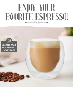 - Insulated and Durable: These 2.37-ounce espresso cups are made from heat-resistant borosilicate glass, keeping your espresso piping hot while ensuring the outer surface remains cool to the touch. The double wall design provides effective insulation, preserving the temperature of your drink for longer.