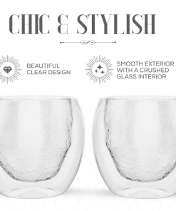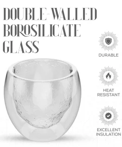 - Stylish Design: Enjoy your espresso in style with the elle décor Double Walled Espresso Glasses featuring a crushed glass design. The elegant double wall construction creates a visually appealing floating effect, making your coffee break a special experience.