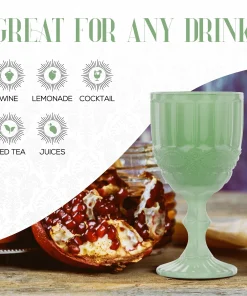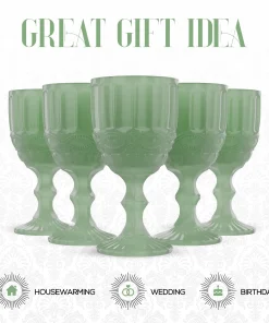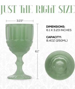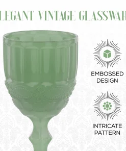 - Vintage Design Appeal: Add charm to your table with vintage goblets in soft jade green, featuring a textured pattern and short stem that brings character to any dinner or celebration.