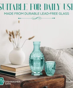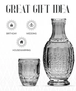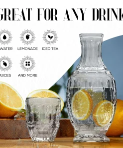 - Complements any decor – from Rustic to glamorous to contemporary, whatever your decorating scheme, the glass carafe set blends in perfectlyÂ