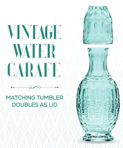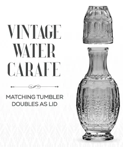 - (1) Elle Decor Vintage Bedside Water Carafe with Tumbler Glass Doubles as Lid