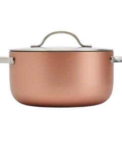 Each cooking vessel in this 10 Piece Professional Grade Epicurious Aluminum Nonstick Cookware Set features a thermally efficient, convenient and eye-catching modern design engineered for professional chefs or professional home cooks. Heavy-gauge aluminum construction with impact-bonded stainless steel base delivers rapid and even heat distribution on all heat sources.