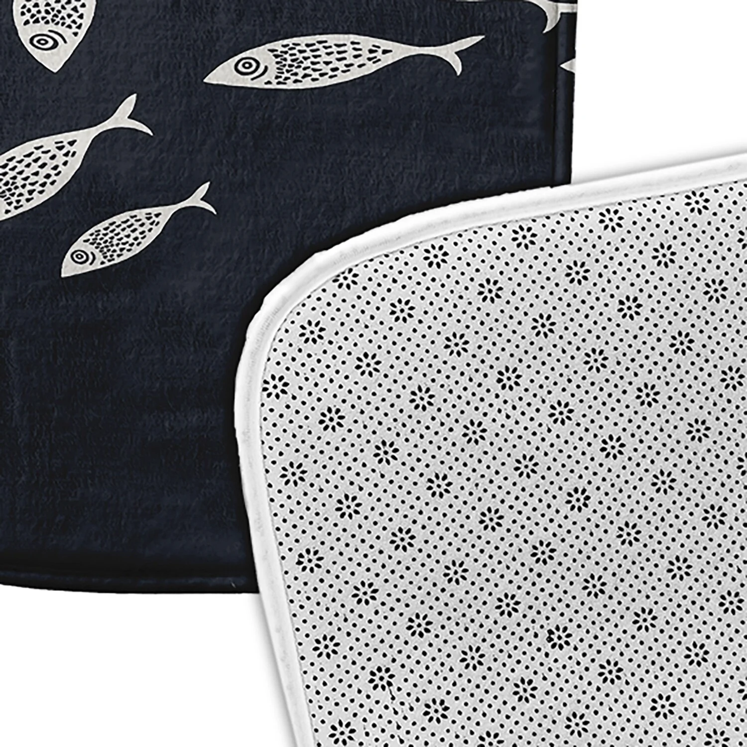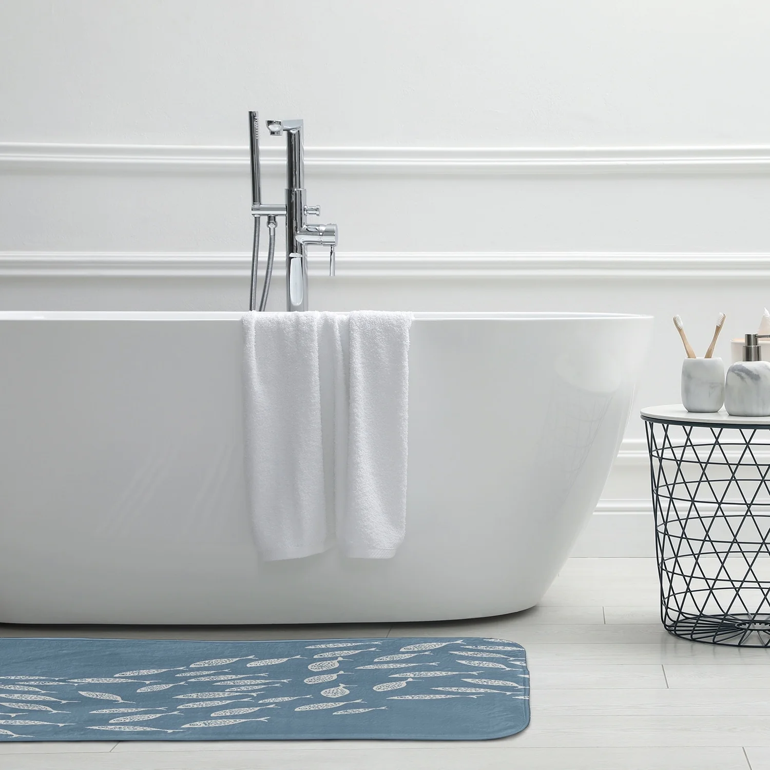 With the combination of sunny colors and beach style, you will love the 24" x 17" Dusty Smoke Escuela Bath Mat from our Beach Vacation Collection. Your bath decor will be enlivened with this bath mat’s coastal vibe! Your toes will appreciate that each bathmat is plush and cushy. Additionally, it has a non-slip backing and when laundering is needed, it comes out of the wash looking like new.