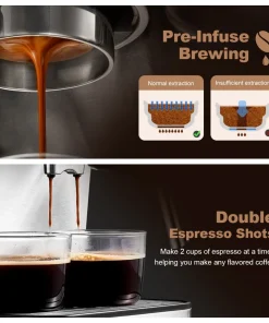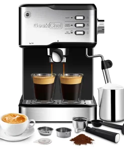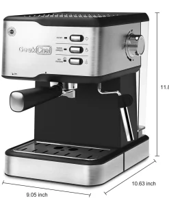 Geek Chef Espresso Machine, Espresso and Cappuccino latte Maker 20 Bar Pump Coffee Machine Compatible with ESE POD capsules filter&Milk Frother Steam Wand,950W,1.5L Water TankÂ
