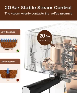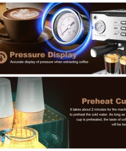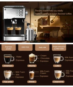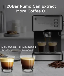 - 20 BAR HIGH SPEED PUMP: Semi-Automatic Espresso Machine, 20 bar professional energy saving pump,powerful pressure to extract coffee. (Glass cup & milk pitcher are not included).