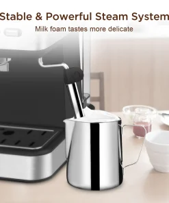 - PROFESSIONAL MILK FROTHING WAND: Frothing milk for cappuccino and latte by hot steam wand. The steam wand rotate degrees, which can produce silky and smooth milk foam better.