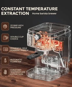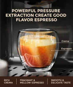 【20 BAR POPULATION SYSTEM】- 20 Bar high-pressure pump provides the right amount of pressure for flavor extraction. Intrigued a small amount of nearly boiled water through finely-ground coffee to make true espresso. Can provide fast and stable extraction, making espresso more fragrant and rich in crema.