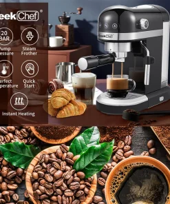【20 Bar Population System】- 20 Bar high-pressure pump provides the correct pressure for flavor extraction. Intrigued a small amount of nearly boiled water through finely-ground coffee to make authentic espresso.