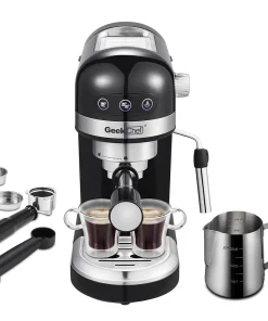 20 Bar high-pressure pump provides the correct pressure for flavor extraction. Intrigued a small amount of nearly boiled water through finely-ground coffee to make authentic espresso. The adjustable steam set controls the built-in steam wand to steam or heat milk. With an articulating dual hot water and steam wand. It has a 1.4L detachable transparent water tank, and with safety, the valve can release pressure automatically. Volumetric control: preset 1 and 2 cups. Thermo block beating system, with polypropylene decoration. It will help you to prepare your favorite Espresso based drink.