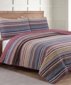 Make your bedroom stand out with the bold and fashionable Taj quilt set from Estate Collection. Made with 100-percent polyester, this set is both soft and reversible, adding versatility to your bedding options. With a 250 GSM rating and machine washable materials, this set is both comfortable and easy to clean. The set includes one quilt and two shams, making for a complete bedding solution.