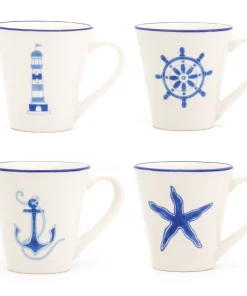 Have your fill of hot or cold beverages with this nautical-themed set of four Euro Ceramica Ahoy mugs.Â