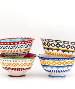 Liven up your table with the colorful patterns on these dessert bowls inspired by Italy’s Amalfi coast. Featuring four unique designs, these bowls make a vibrant addition to mix-and-match place settings. Durable high-fired porcelain lends strength to these bowls. Perfect to serve your favorite foods and desserts. Use for Ice cream sundaes, popcorn/snacks, cereals, fruits, and more!Â