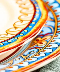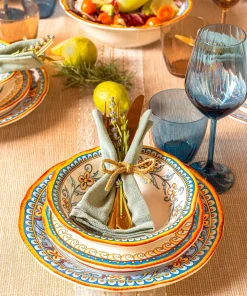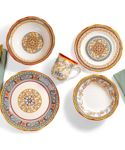 This set features a timeless Italian pattern in cream and gold, crafted from high-quality stoneware for durability and everyday use.Â