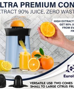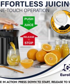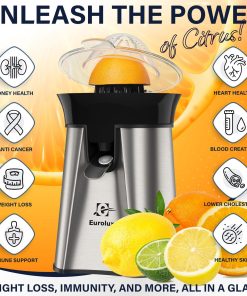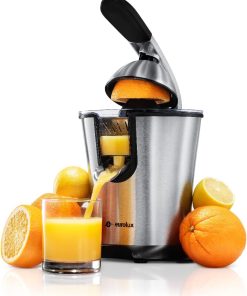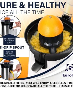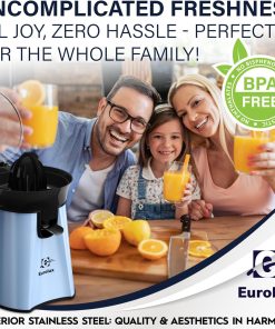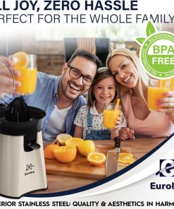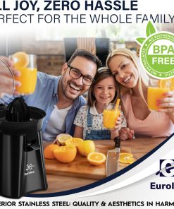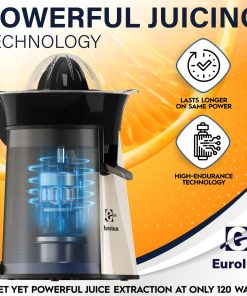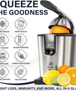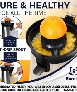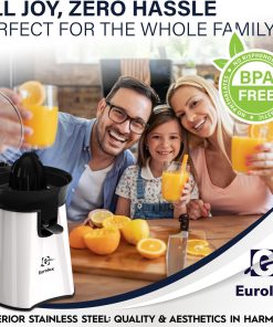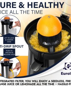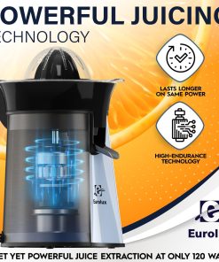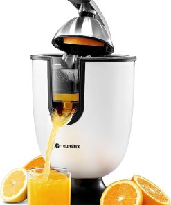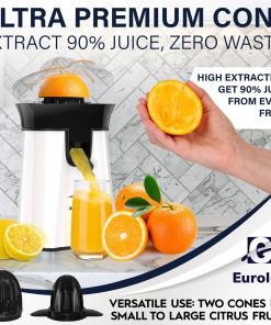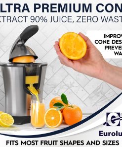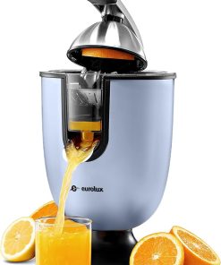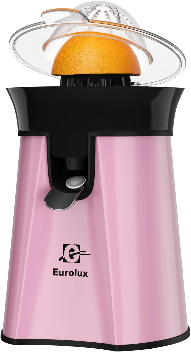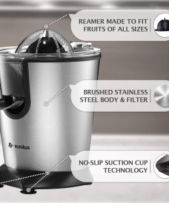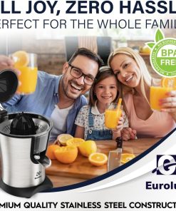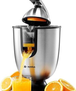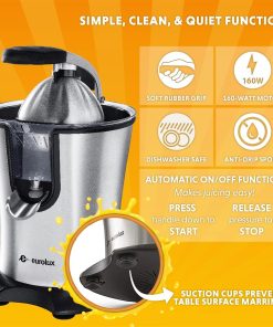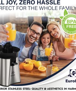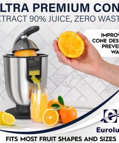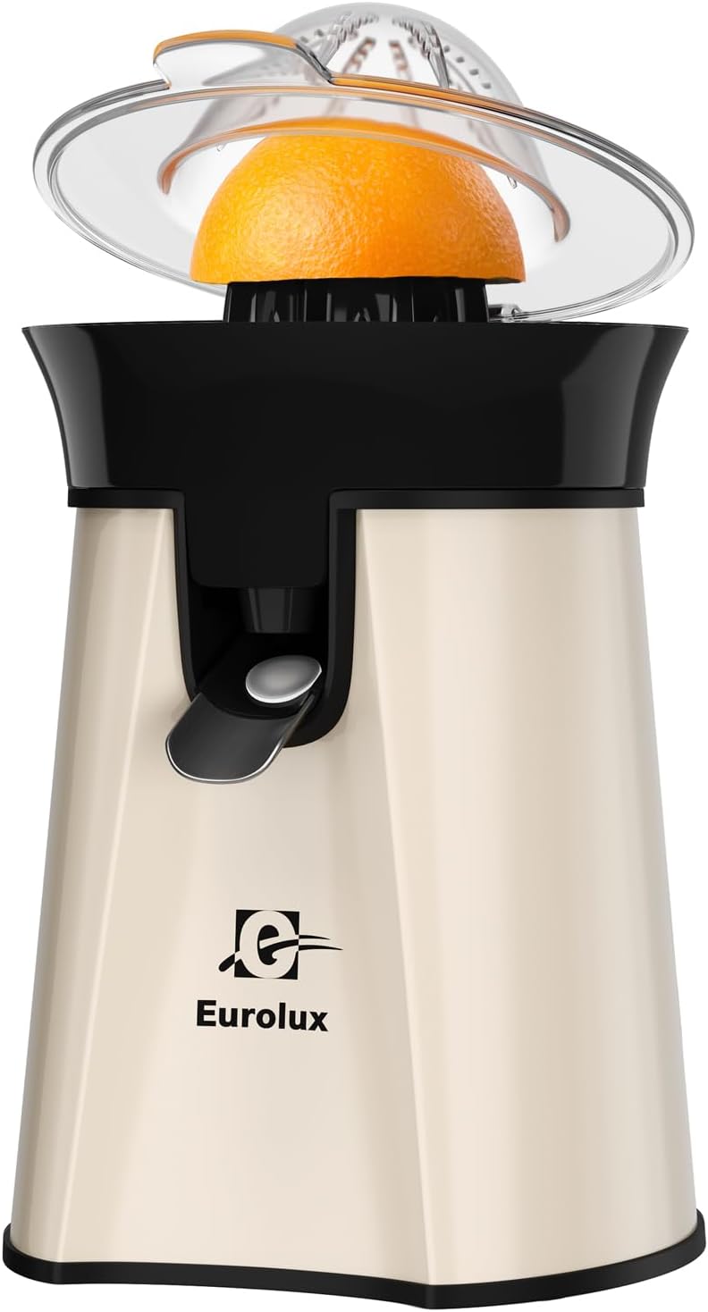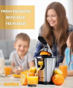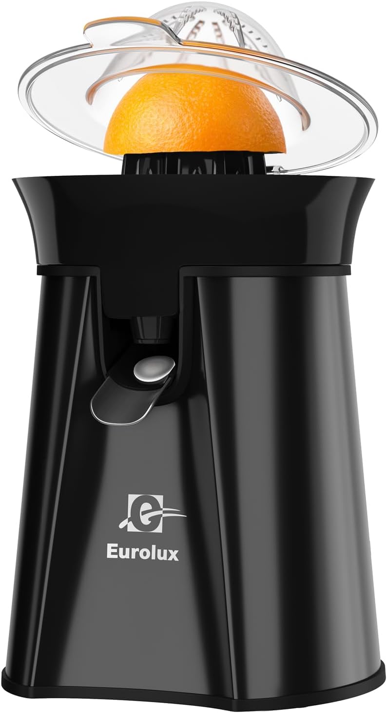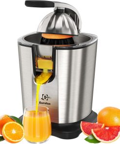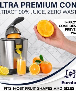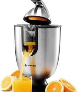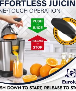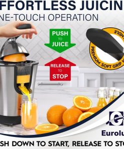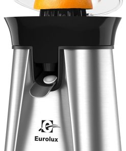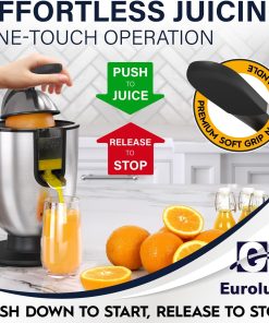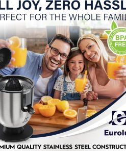 Eurolux Premium Electric Orange Juicer | Stainless Steel Citrus Squeezer With New Ultra-Powerful Motor and Soft Grip Handle for Effortless Juicing, Auto Shutoff, Dishwasher-safe Parts, Pulp Control