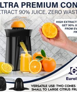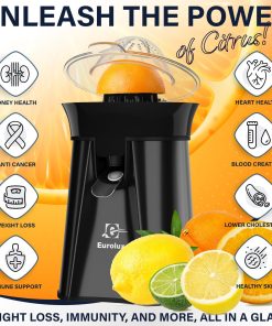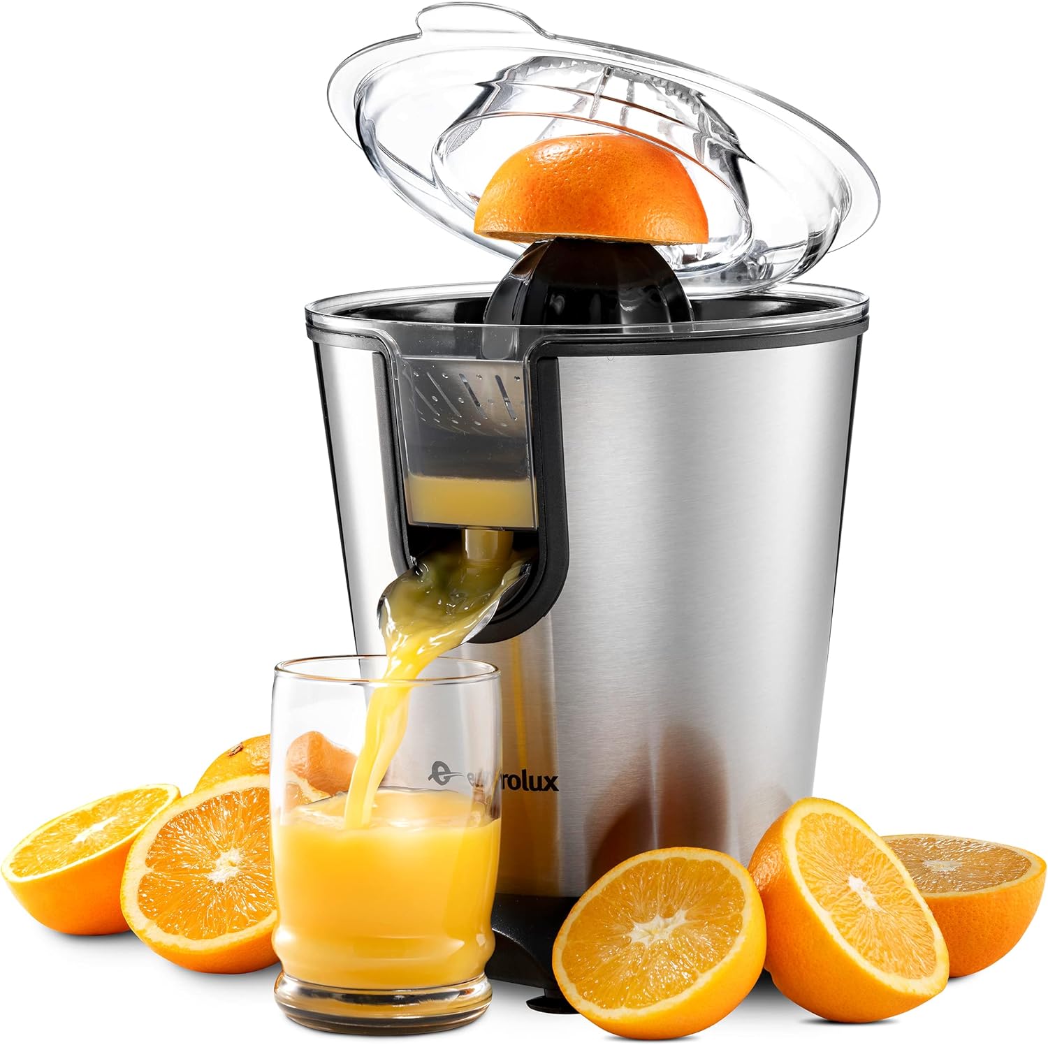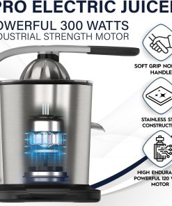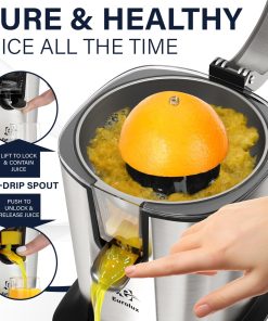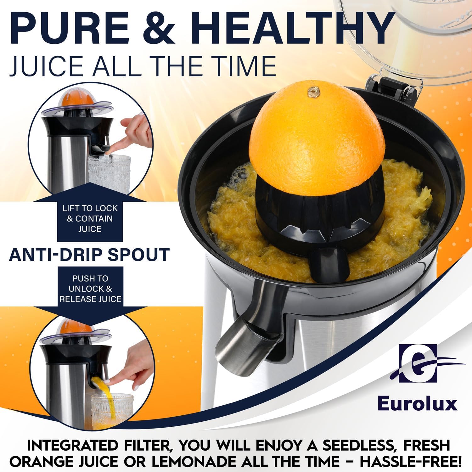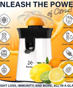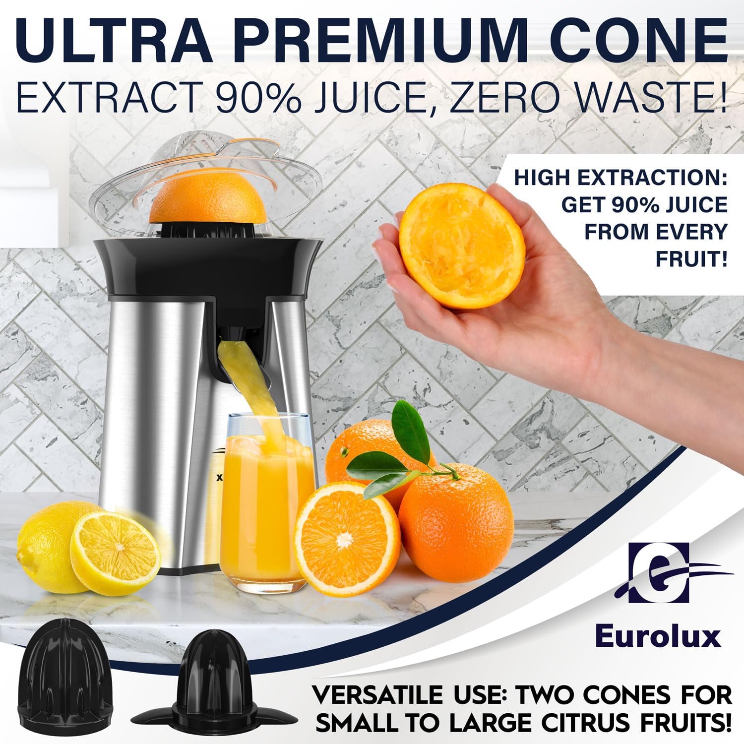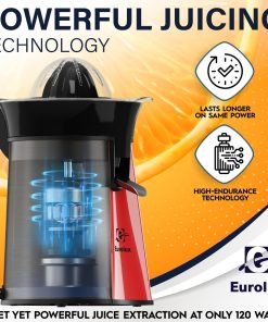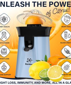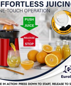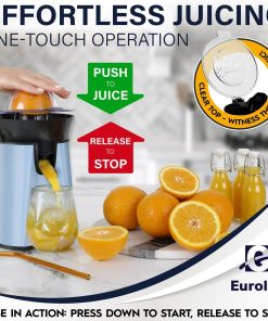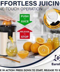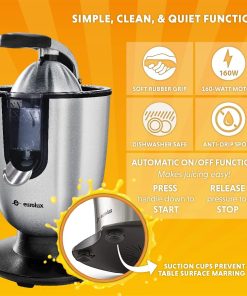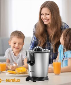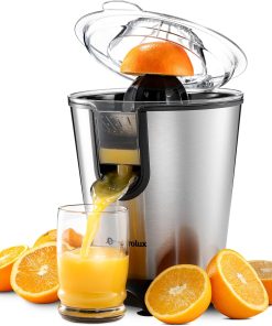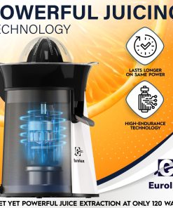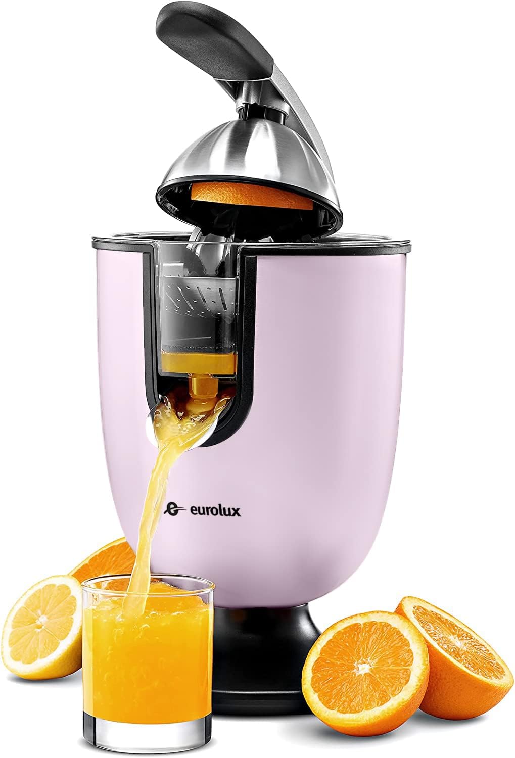 Eurolux Premium Electric Orange Juicer | Stainless Steel Citrus Squeezer With New Ultra-Powerful Motor and Soft Grip Handle for Effortless Juicing, Auto Shutoff, Dishwasher-safe Parts, Pulp Control
