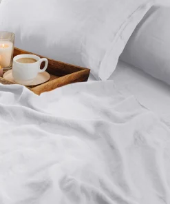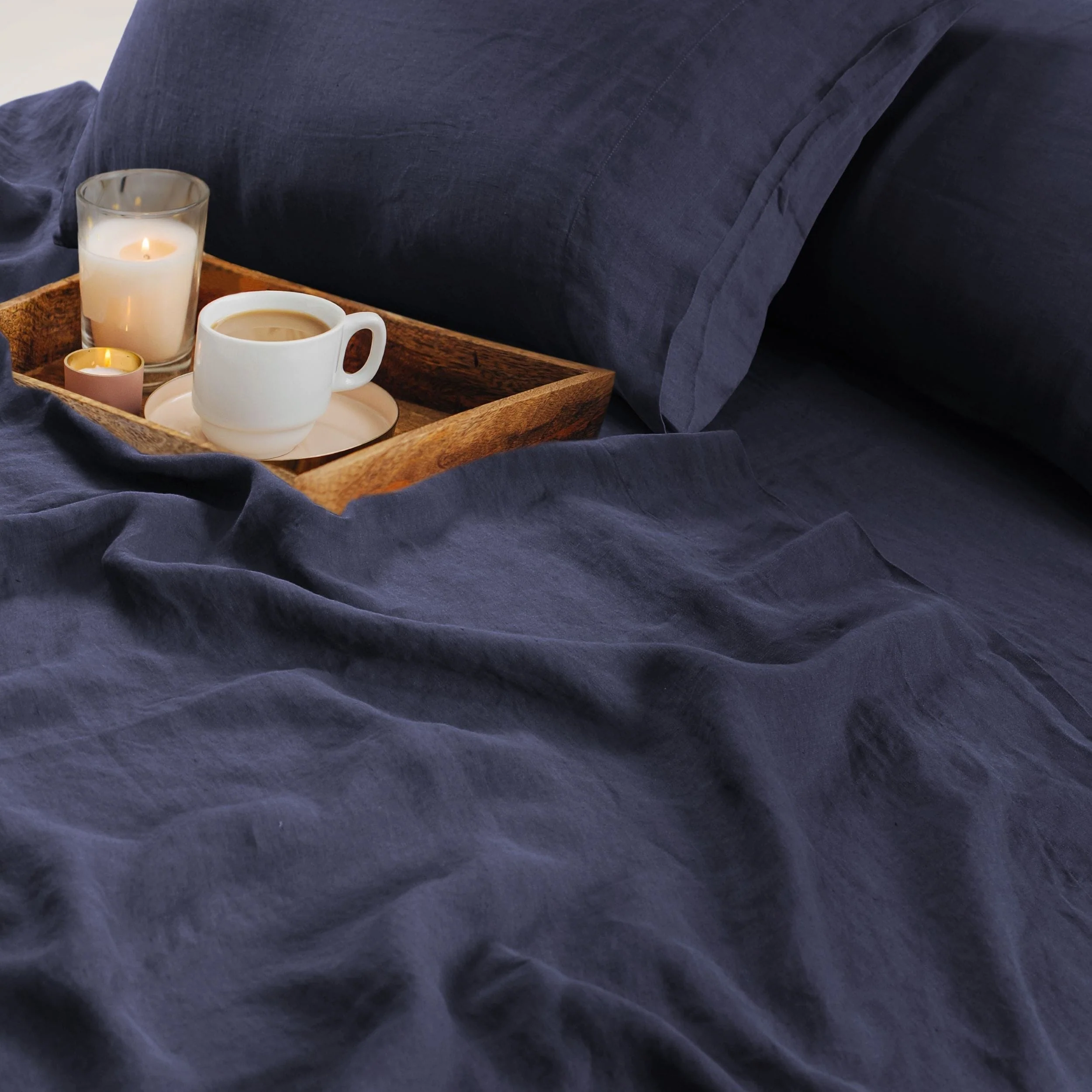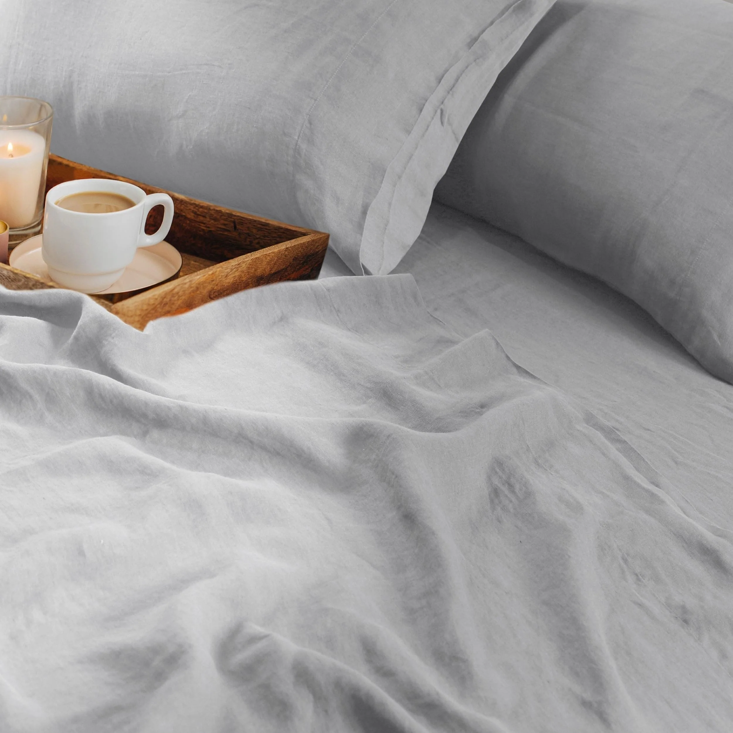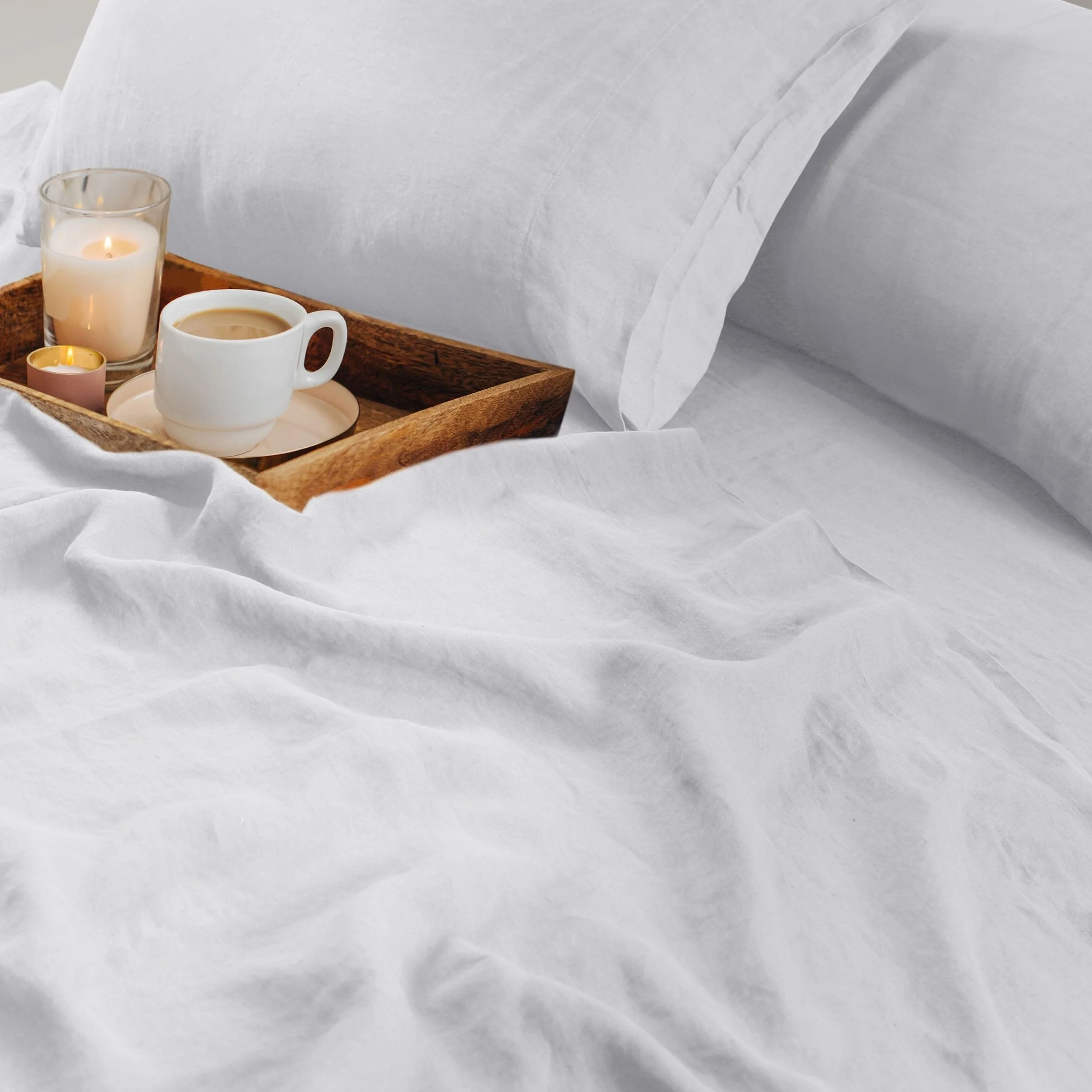 Indulge in comfort and effortless elegance with our high-quality garment washed 100% linen queen extra deep pocket sheet set with the quality craftsmanship of Portuguese manufacturing. Crafted from certified European flax, our linen sheets are made from 100% French flax, known for it superior quality and natural breathability and for a soft and supple feel that only gets better with time for all-season comfort. These sheets undergo a special garment-washing process to enhance softness and give a relaxed, lived-in feel. The extra deep pocket fitted design ensures a perfect fit for mattresses up to 21" deep along with a generous size flat sheet, providing both comfort and practicality. Experience the comfort of knowing that this product is Oeko-Tex Standard 100 certified to ensure that these lines are free from harmful substances, providing you with textiles that are safe for your health and the environment. Designed for convenience, these bed sheets can be easily cleaned in your standard washing machine, saving you time and effort. Made in Portugal to ensure the highest standards of quality and design, every piece is crafted with precision and care.